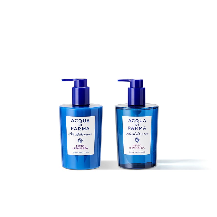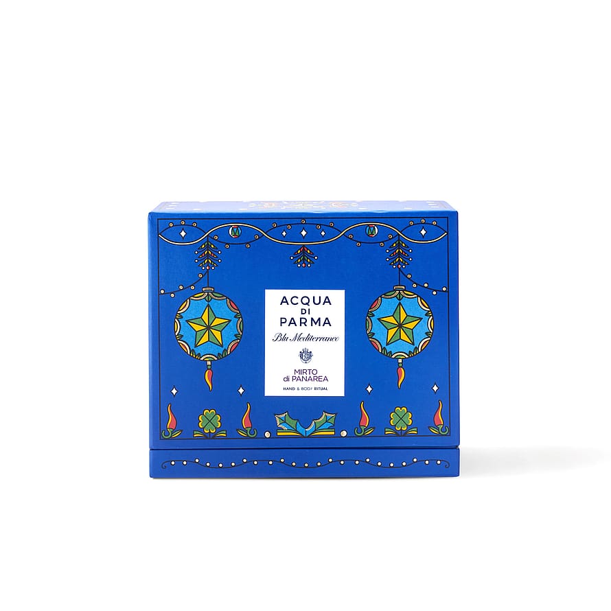 Juhlallinen Mirto di Panarea Hand and Body Ritual, joka on suotuisasti esitelty koristeellisessa sinisessä laatikossa, jossa on loistava tähti, toivon majakka, joka on yhtä inspiroiva kuin Blu Mediterraneon upeat italialaiset kohteet.