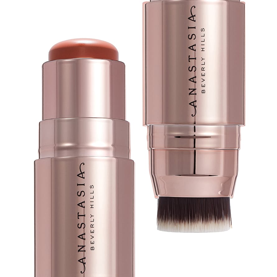 Pyyhkäise pieni määrä Stick Blush -poskipunaa poskien keskiosaan suoraan puikosta ja häivytä sitten ylöspäin kohti hiusrajaa siveltimellä. Levitä pyörivin liikkein ja kerrosta iholle väriä taputellen. Kerrosta kunnes haluttu voimakkuus on saatu.