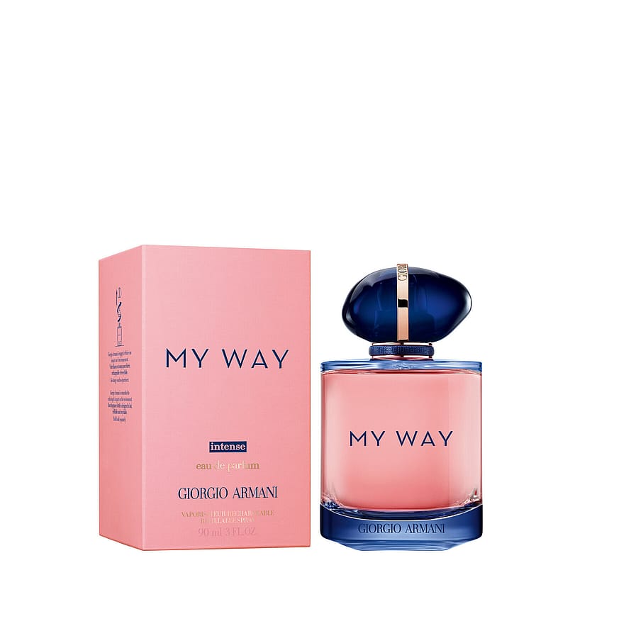 Giorgio Armani My Way intense on kutsu itsetutkisteluun, merkityksellisiin kohtaamisiin ja voimakkaisiin kokemuksiin. Intensiivinen kukkaistuoksu metsäisellä vivahteella on valmistettu vastuullisesti tuotetuista ainesosista. Tuoksussa avautuu Egyptin appelsiininkukkien raikas tuoksu. Intialaisen tuberosan intensiivinen sydäntuoksu paljastaa sametinpehmeän vivahteen kukkaistuoksusta. Uuden-Kaledonian santelipuu antaa pohjatuoksuun addiktoivan, täyteläisen vivahteen ja kohtaa metsäpolulla Madagaskarin täyteläisen vaniljan. Sinikultainen, jalokivimäinen korkki symboloi talismaania, joka vangitsee kaikki kokemukset. Korkkiin ikuistettujen hetkien intensiteetti näkyy My Way Intense -pullossa; sen lasi kylpee läpikuultavissa sinissä heijastuksissa. Ylellinen tuoksupullo on uudelleentäytettävä ja sisältää vastuullisesti ja kestävästi tuotettuja ainesosia. Talismaani, johon tiivistyy kaikki oleellinen: I AM WHAT I LIVE