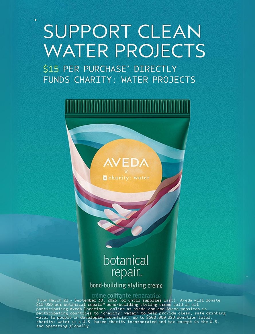 Yhdessä voimme muuttaa elämiä puhtaan veden avulla. Jokaisesta ostoksesta lahjoitetaan 15 USD suoraan charity: water -hankkeisiin, jotka tukevat puhtaan veden saantia. Monikäyttöinen koostumus antaa joustavaa pitoa, tekee hiuksista jopa seitsemän kertaa sileämmät, rakentaa uusia sidoksia ja on saatavana rajoitetun ajan erikoissuunnitellussa pakkauksessa, joka on luotu Earth Month -kampanjaa varten.