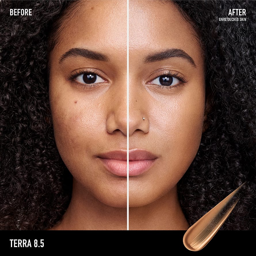 Levitä sormenpäilläsi: Taputtele poskillesi, otsaan, leukaan ja nenään ja häivytä sitten ulospäin suuntautuvin liikkein. Yhdistä Smoothing Face Brush -siveltimen kanssa: Purista helmen kokoinen määrä siveltimeen ja häivytä. Lisää peittävyyttä jatkamalla kerrostamista siveltimellä.