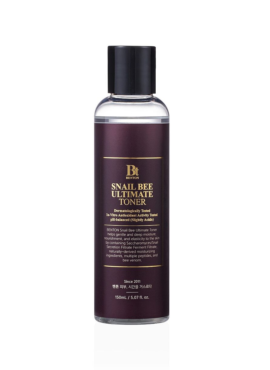 Snail Bee Ultimate Toner on kasvovesi, joka sisältää 7 erilaista hyaluronihappoa syvälliseen kosteutukseen ja sopii kaikille ihotyypeille. Se perustuu korkeaan pitoisuuteen fermentoitua etanaseerumia, joka rauhoittaa punoitusta ja ärsytystä samalla kun se auttaa ihoa korjautumaan, sekä mehiläismyrkkyyn, joka stimuloi ihon kollageenin ja elastaanin tuotantoa, tehden siitä kimmoisamman ja täyteläisemmän. Etanaseerumi ja mehiläismyrkky yhdessä ehkäisevät tehokkaasti hienojen juonteiden ja ryppyjen muodostumista samalla kun ne parantavat ihon rakennetta ja yleistä ulkonäköä. Niaciniamidi tasapainottaa talin tuotantoa ja ehkäisee tukkeutuneita huokosia samalla kun se kirkastaa pigmenttiläiskiä, antaen tasaisemman ihonsävyn. Dermatologisesti testattu.