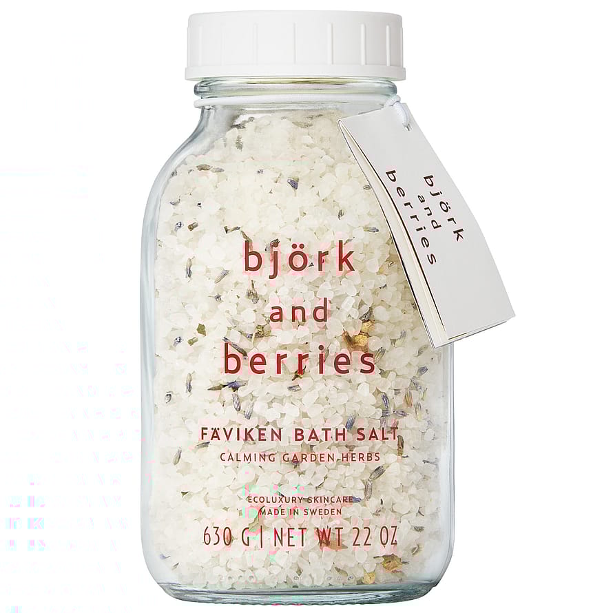 Kasviperäinen kylpysuola, joka on valmistettu kukista ja yrteistä, jotka ovat kasvaneet Björk & Berriesin tilalla Fävikenissä Pohjois-Ruotsissa. Björk & Berries viljelee muutamia tarkasti valittuja ainesosia ja kokeilee kasveja ja yrttejä Pohjois-Ruotsin vaativissa olosuhteissa. Päivittäistä inspiraatiota tarjoavat alueen sankat metsät ja kaunis tunturi.
