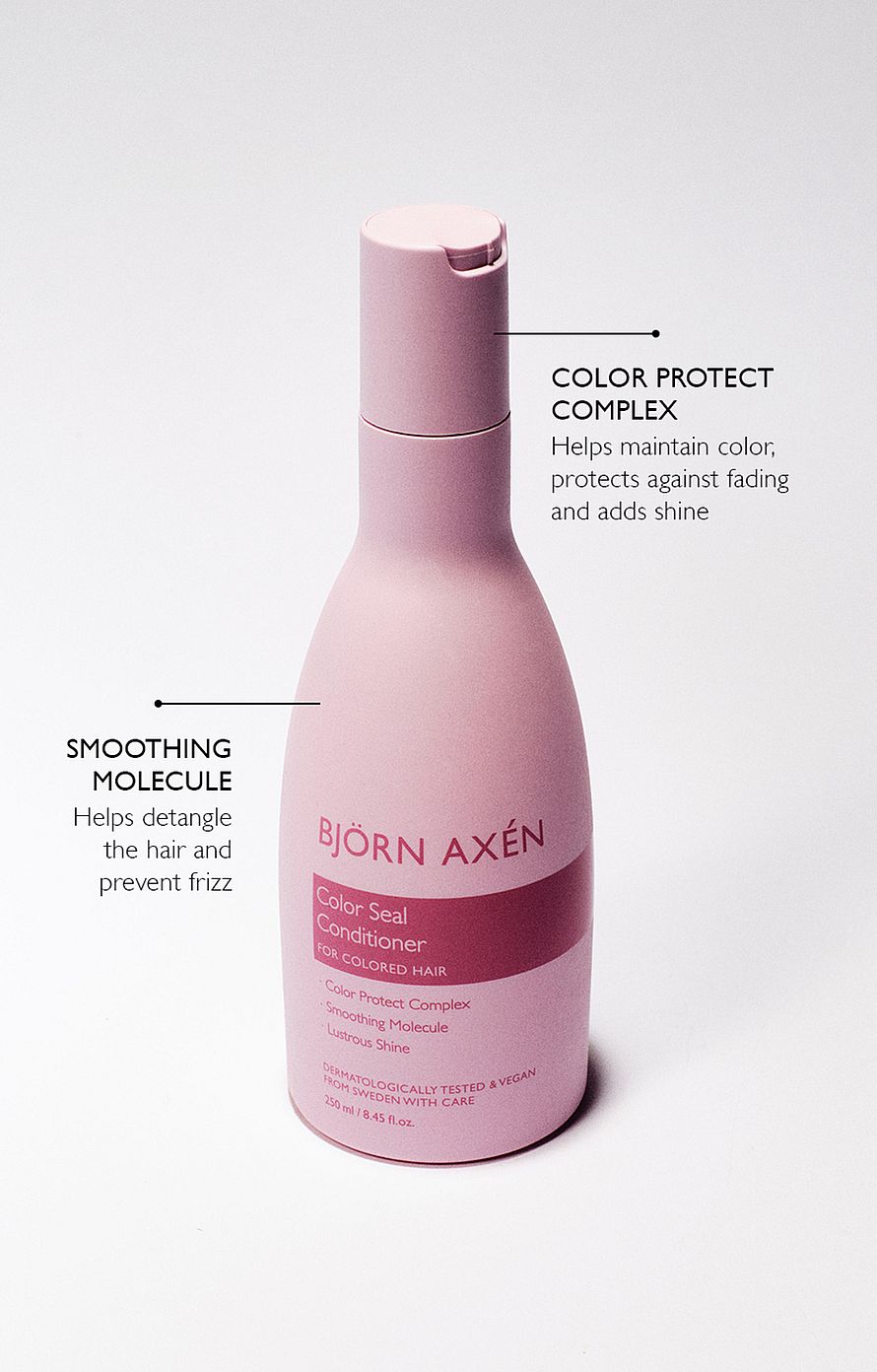 Värjätyille hiuksille tarkoitettu hoitoaine, jonka sisältämä Color Protect Complex säilyttää hiusten värin. Vahvistaa hiuksia ja pitää ne kosteutettuina, sileinä, kiiltävinä ja pehmeinä. Ei latista hiuksia. Ehkäisee pörröisyyttä ja auttaa selvittämään takkuiset hiukset. Vaalennetuille hiuksille suosittelemme Repair-sarjan tuotteita. Vegaaninen ja dermatologisesti testattu.