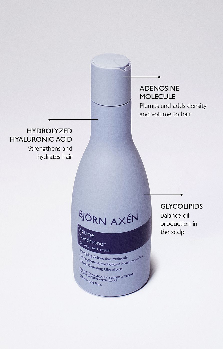 Levitä kosteisiin hiuksiin ja hiuspohjaan shampoopesun jälkeen. Hiero hoitoaine hiuspohjaan ja huuhtele huolellisesti. Käytä yhdessä muiden Björn Axén Volume -sarjan tuotteiden kanssa tehostaaksesi tuuheuttavaa vaikutusta.