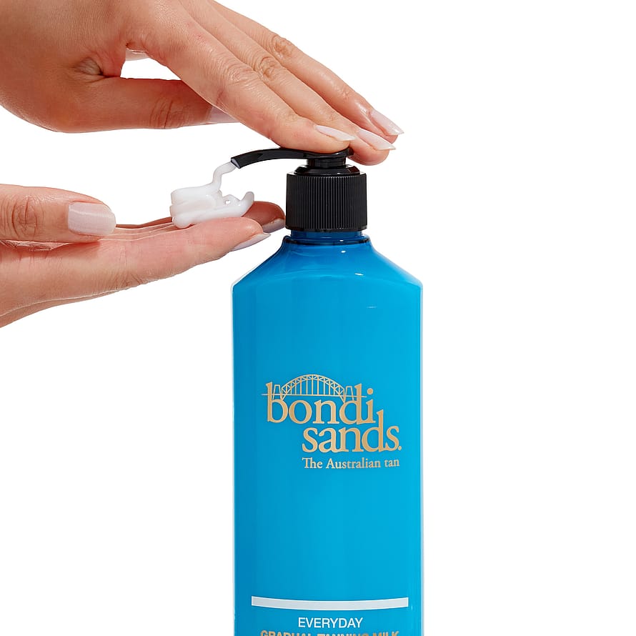 Merta, hiekkaa ja aurinkoa Australian tyyliin. Saat iholle ympärivuotista hehkua innovatiivisella, asteittain ruskettavalla, päivittäiseen käyttöön tarkoitetulla Bondi Sands -emulsiolla. Tuote sisältää aloe veraa ja E-vitamiinia, jotka hoitavat ihoa ja saavat sen hehkumaan. Emulsio levittyy helposti ja antaa kestävän rusketuksen.
