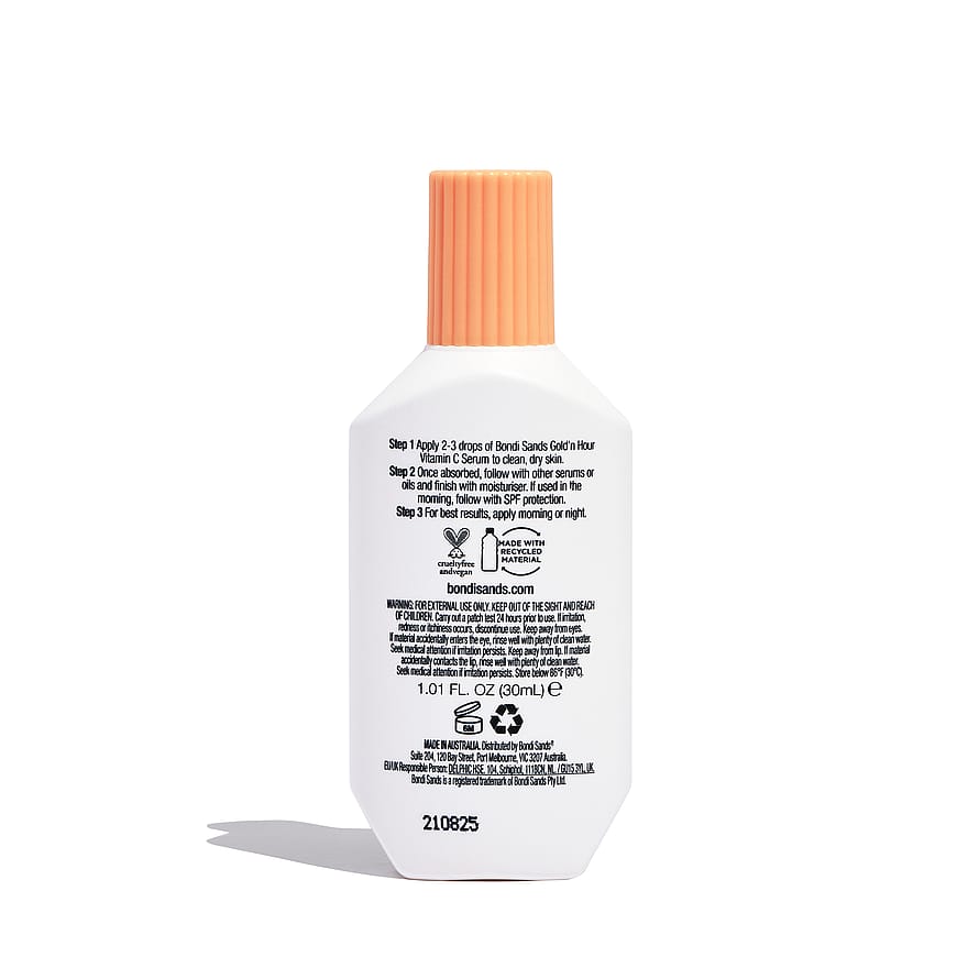 Gold'n Hour Vitamin C Serum tekee jokaisesta vuorokauden tunnista kullanhehkuisen. Seerumi antaa iholle rauhoittavan, ravitsevan ja kirkastavan vaikutuksen sekä jättää sen upean hehkuvaksi. Koostumus sisältää C-vitamiinia, kakadumarjaa ja lakritsiuutetta, jotka vastustavat epätasaisuutta ja sameutta ja antavat vastustamatonta hehkua. Sopii kaikille ihotyypeille, myös herkälle. Vegaaninen.