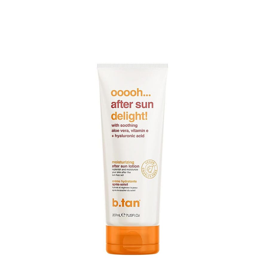 Ooooh... After Sun Delight After Sun Lotion on kosteuttava after sun -geeli, joka palauttaa ja kosteuttaa ihoa, jotta se säilyttää hehkuvan rusketuksensa. Sisältää aloe veraa, hyaluronihappoa ja E-vitamiinia. Täydellinen silloin, kun iho tarvitsee kosteutusta ja korjausta auringonoton jälkeen. Voide on 100% vegaaninen.
