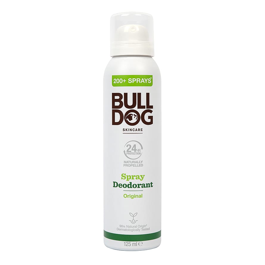 Bulldog Original Spray Deodorant on miesten spraydeodorantti, joka on suunniteltu antamaan 24 tunnin suojaa epämiellyttävää hajua vastaan. Deodorantti on Bulldogin tunnusomainen tuoksu, jossa on raikkaita sävyjä sitruunasta, appelsiinista ja bergamotista, täydennettynä salvialla, patchoulilla ja setrulla. Se yhdistää luonnon ja tieteen parhaat puolet ainutlaatuiseen tuoksuteknologiaan, joka tarjoaa suojan epämiellyttävää hajua vastaan ja pitkäkestoisen raikkauden. Sopii myös herkälle iholle.