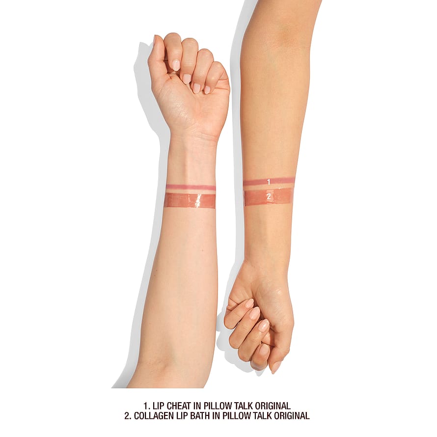 Saavuta täydelliset nude-pinkin sävyiset huulet Charlotten ikonisella Lip Cheat -huulipunalla ja ihonhoitoainesosia sisältävällä Collagen Lip Bathilla. Upea kaksikko, joka kosteuttaa, muokkaa ja antaa peilimäisen kiillon − kaikki pakattuna juhlavaan nauhalliseen joulupalloon, joka sopii kuuseen ripustettavaksi. Tähtien ja supermallien suosima Pillow Talk -huulten ilme sopii kaikille!