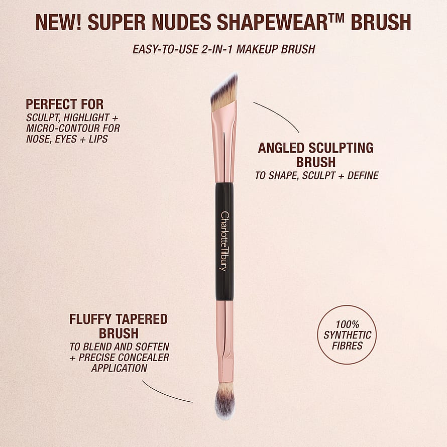 Tämä 2-in-1 -meikkisivellin on suunniteltu muokkaamaan, korostamaan ja mikrokäsittelemään nenää, silmiä ja huulia. Viistetty muotoiluharja muotoilee, muokkaa ja määrittelee, ja pehmeä, kapeneva harja sopii pienempien kasvojen alueiden häivyttämiseen ja pehmentämiseen.