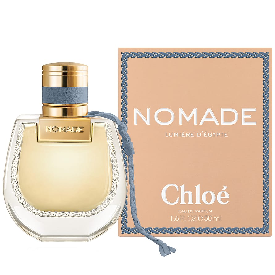 Chloé Nomade Lumière d’Égypte Eau de Parfum on kunnianosoitus Egyptille, Chloén perustajan Gaby Aghionin synnyinmaalle. Tuoksu on saanut inspiraationsa sinisestä lootuksesta, joka puhkeaa kukkaan aamunkoitteessa Niilin rannoilla, ja vangitsee viileän veden, vehreiden maisemien ja autiomaan kultaisen valon kohtaamisen. Kompositio avautuu pehmeillä ja ilmavilla sinisen lootuksen vivahteilla. Sydämessä tuoksua syventää jasmiini, joka tuo samettista kukkaista lämpöä. Vaaleanpunainen marja ja elemin eteerinen öljy tuovat mausteisen ja eläväisen sävyn, joka johdattaa pohjaan, jossa kyphi-akordi ottaa vallan – hienostunut sekoitus kanelinkuorta, santelipuuta ja mirhaa, muinaisen egyptiläisen hajuvesitaiteen inspiroimana. Pullo kantaa ikonista Nomade-siluettia kultaisten yksityiskohtien ja tummansinisen punotun nauhan koristamana – sinisen sävy, joka on saanut inspiraationsa egyptiläisestä lootuksesta.