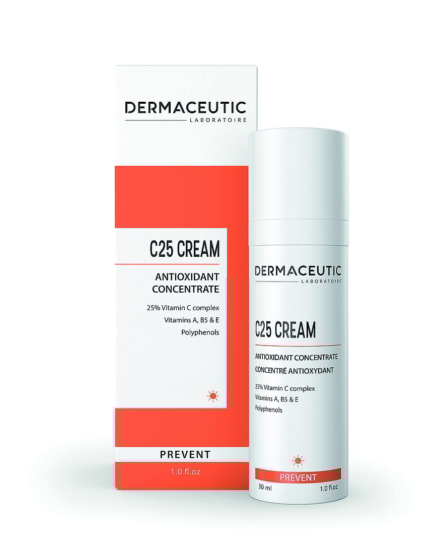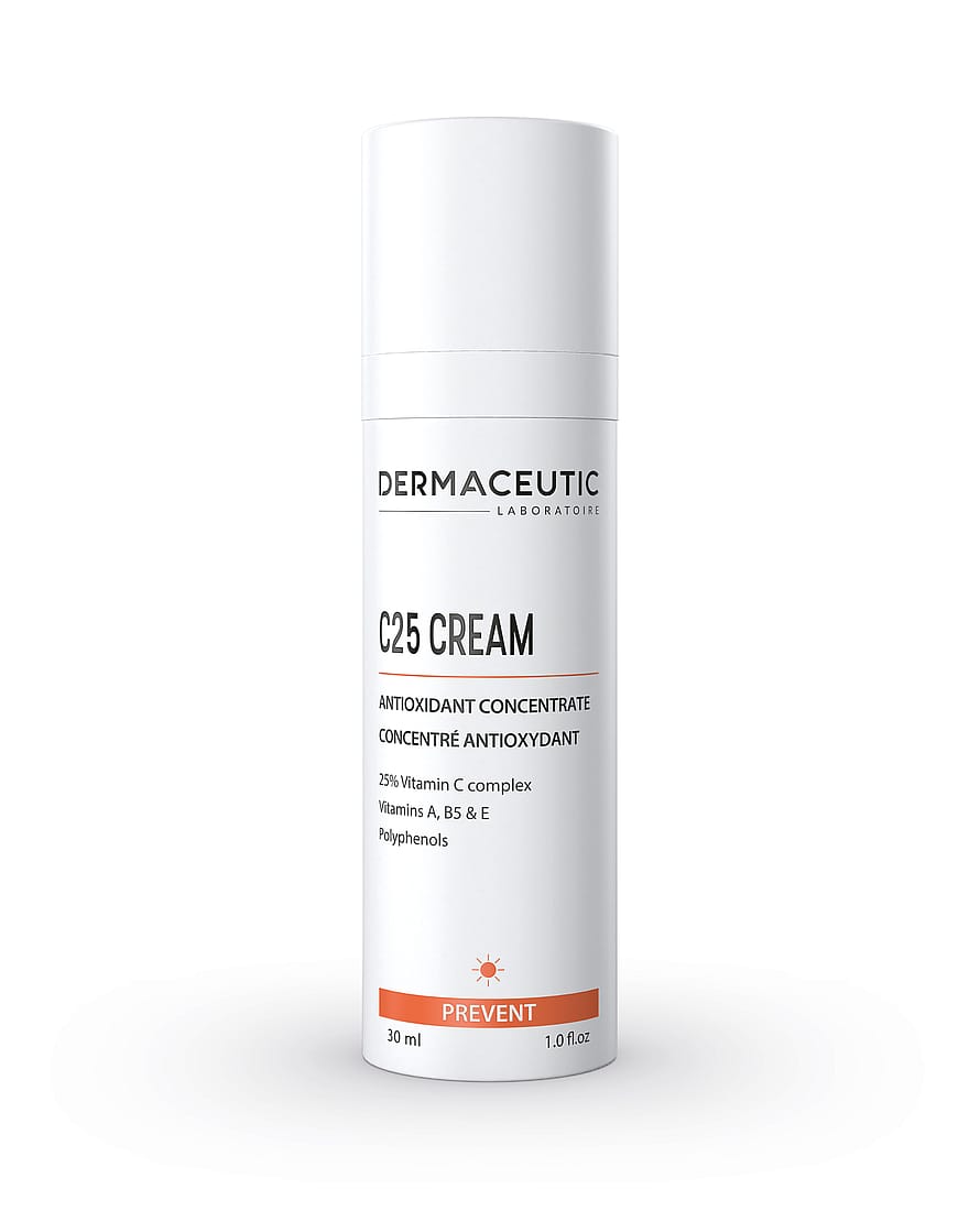 Suojaava tiiviste, joka ehkäisee pigmenttimuutoksia ja ryppyjä. Korkea stabiloidun C-vitamiinin pitoisuus tekee ihosta uskomattoman hehkuvan. C25 Cream sisältää uraauurtavan antioksidantteja sisältävän koostumuksen, jonka avulla voidaan ehkäistä tehokkaasti vapaita radikaaleja ja suojata ihoa auringonsäteilyltä ja ilmansaasteilta. Näin ryppyjä ja värivirheitä aiheuttavia tekijöitä pystytään rajoittamaan. Askorbosilaani C (vakaa C-vitamiinijohdannainen) suojaa kollageenikuituja ja ylläpitää ihon kosteustasoa.