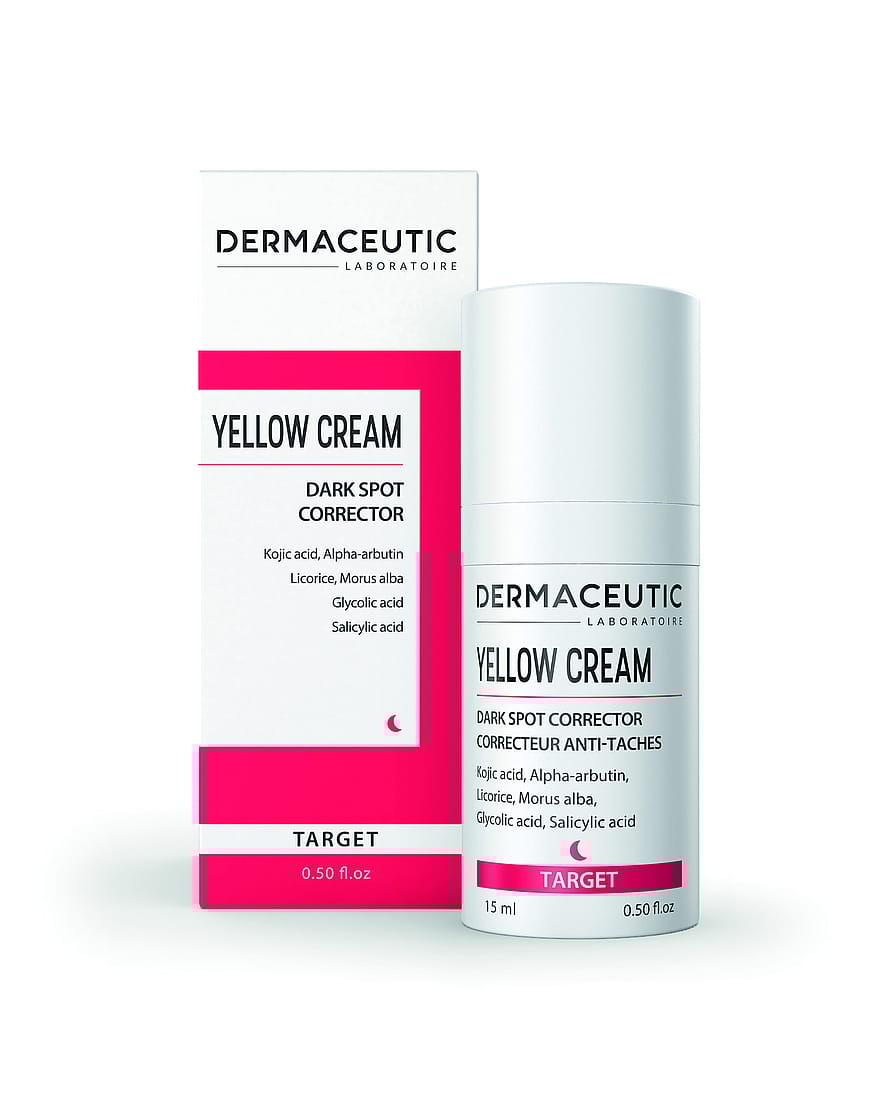 Erityistuote pigmenttimuutoksia vastaan. Sisältää runsaasti pigmenttiä vaalentavia ja kuorivia aineita. Suositellaan käytettäväksi yhdessä Light Ceutic -tuotteen kanssa. Yellow cream on vaihtoehto hydrokinonipohjaisille valmisteille.