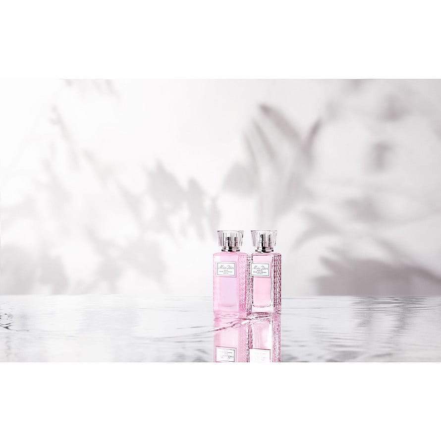 Miss Dior -hiustenhoitorutiinin ensimmäinen vaihe, eteeristä ruusuvahaa sisältävä Miss Dior -hiusöljy, kosteuttaa ja suojaa hiuksia. Sen kevyt ja hoitava koostumus tekee hiuksista pehmeät, joustavat ja kiiltävät ja jättää niille hienovaraisen Miss Dior Blooming Bouquet -kukkaistuoksun.
