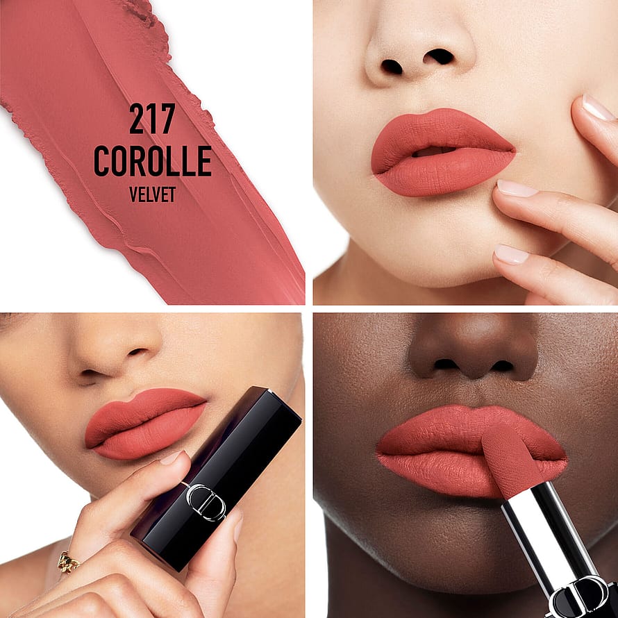 Samettinen matta, jonka myötäilevä koostumus tekee huulista täyteläiset ja pehmeät. Höyhenenkevyt kalvo jättää huulet täyteläisiksi ja sileiksi mukavuudesta tinkimättä. Huulipunan hylsy on koristeltu Diorin kankaiden inspiroimalla kuviolla.