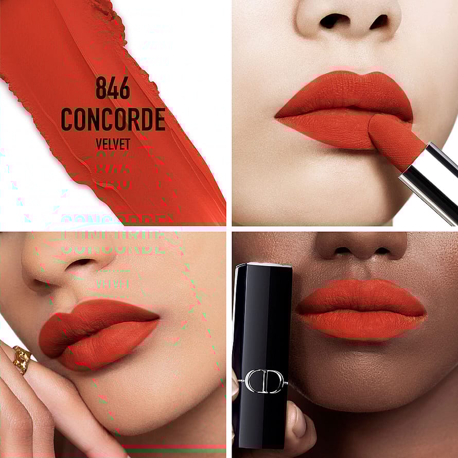 Samettinen matta, jonka myötäilevä koostumus tekee huulista täyteläiset ja pehmeät. Höyhenenkevyt kalvo jättää huulet täyteläisiksi ja sileiksi mukavuudesta tinkimättä. Huulipunan hylsy on koristeltu Diorin kankaiden inspiroimalla kuviolla.