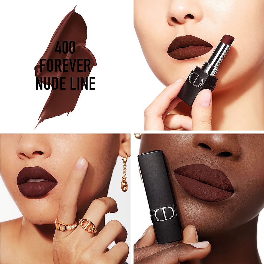 Tahraamaton Rouge Dior Forever -huulipuna ei sotke vaatteita ja sen ultramatta couture-väri säilyy huulilla pitkään. Sävyt ovat selkeitä ja rohkeita, voimakkaampia kuin koskaan ennen.