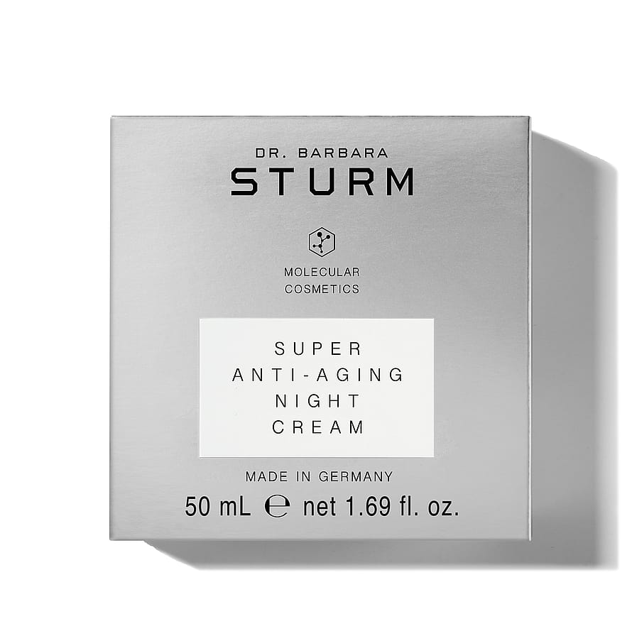 Super Anti-Aging Night Creamin tehokas koostumus täydentää Dr. Sturmin Night Serumia ja tehostaa ihon öisiä korjausmekanismeja saaden ne toimimaan nopeammin ja intensiivisemmin. Yövoide vaikuttaa välittömästi ja pitkäkestoisesti erityisesti valikoitujen peptidien, polysakkaridien jamikroleväuutteen ansiosta. Voide auttaa ehkäisemään ikääntymisen merkkejä, tehostamaan ihon omia myrkynpoistoprosesseja ja tukemaan kehon omaa hyaluronihapon tuotantoa. Iho näyttää nuoremmalta ja tuntuu täyteläisemmältä ja kiinteämmältä, ja siinä on vähemmän näkyviä ryppyjä ja enemmän raikasta hehkua. Yövoide, joka tukee ihon korjausprosesseja. Ehkäisee ikääntymisen merkkejä, kuten kiinteyden menetystä ja ryppyjä. Iho tuntuu kiinteämmältä, täyteläisemmältä ja hehkuvammalta.