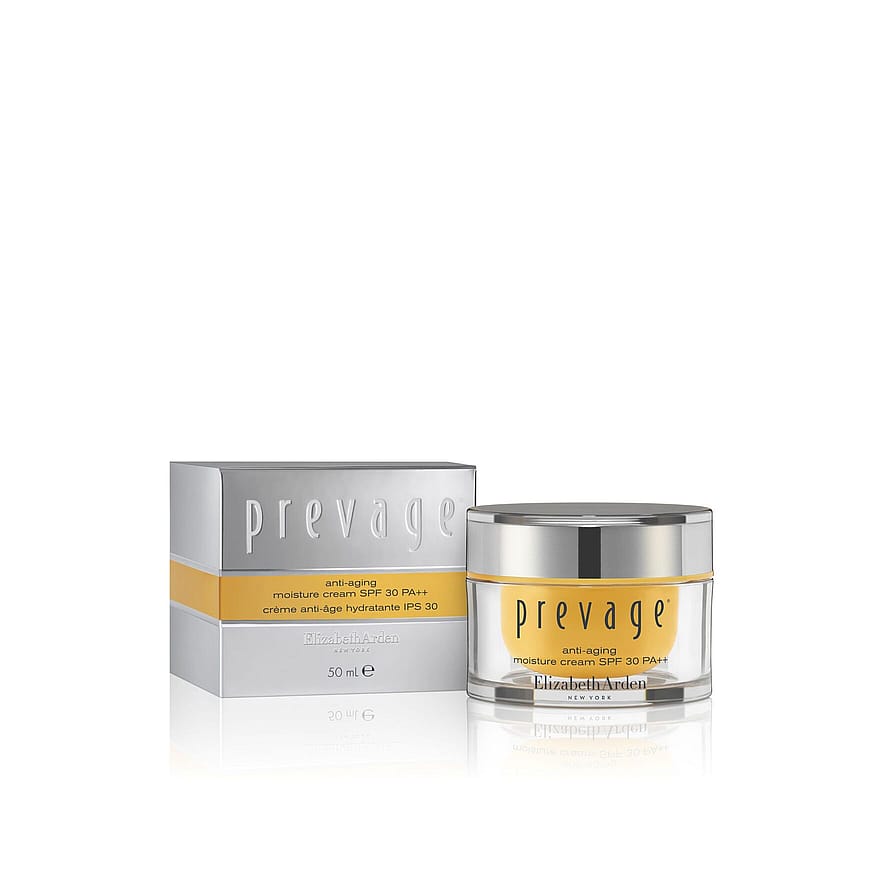 Nyt voit antaa iholle äärimmäisen apuvälineen, joka vähentää näkyvästi ja ehkäisee ryppyjä ja suojaa auringolta. PREVAGE® Day toimii yhdessä PREVAGE® Anti-aging Treatmentin kanssa ja tuottaa vieläkin selkeämmät ikääntymisen merkkejä torjuvat vaikutukset. Ihosi näyttää nuoremmalta ja terveemmältä. Kaikkien aikojen ensimmäinen kosteusvoide, jossa on sekä suuri aurinkosuojakerroin että mullistavaa ja tehokasta idebenoni-antioksidanttia.