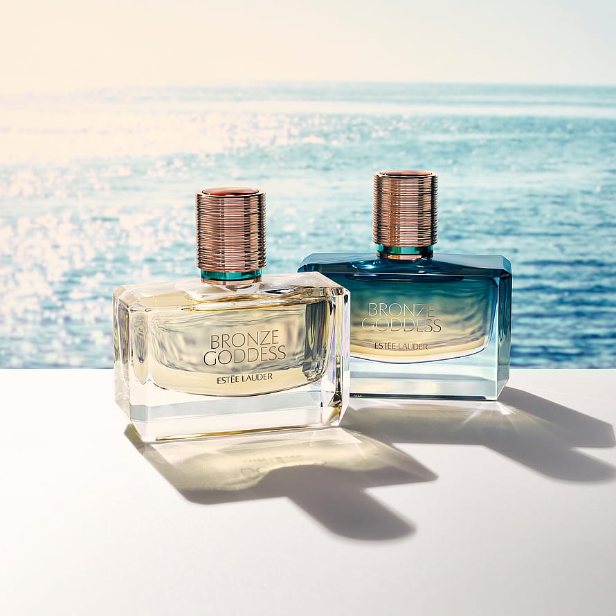Auringonnoususta auringonlaskuun kuumuus on läsnä. Bronze Goddess Eau Fraîche on päiväsi hehku. Bronze Goddess Nuit valaisee yön.