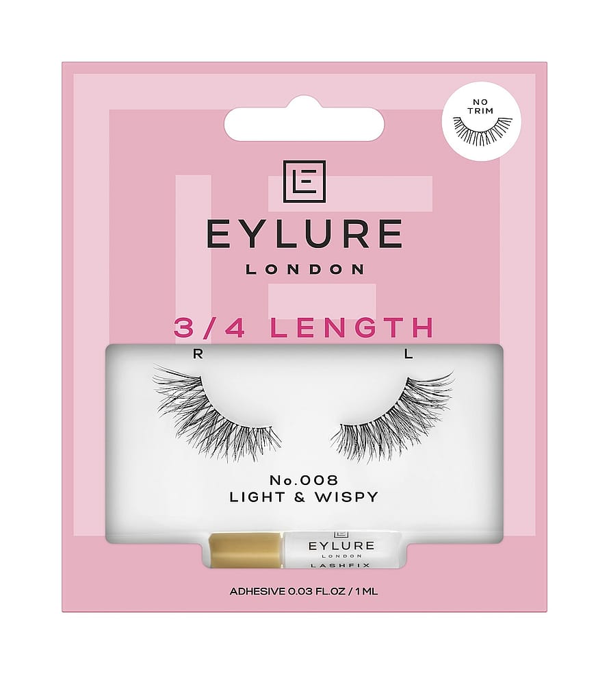 Eylure 3/4 pituisten ripsien kokoelma tarjoaa näyttävyyttä ilman mittaamista ja leikkaamista. Lyhyemmän ripsinauhan ripset sopivat täydellisesti aloittelijoille, mutta myös kokeneemmille käyttäjille, jotka haluavat hieman extraa silmämeikkiinsä helposti ja nopeasti. Käsintehdyt ripset ovat helppo asentaa ja uudelleenkäytettävät. Pakkauksessa tulee mukana vegaaninen ja lateksiton 18h ripsiliima.