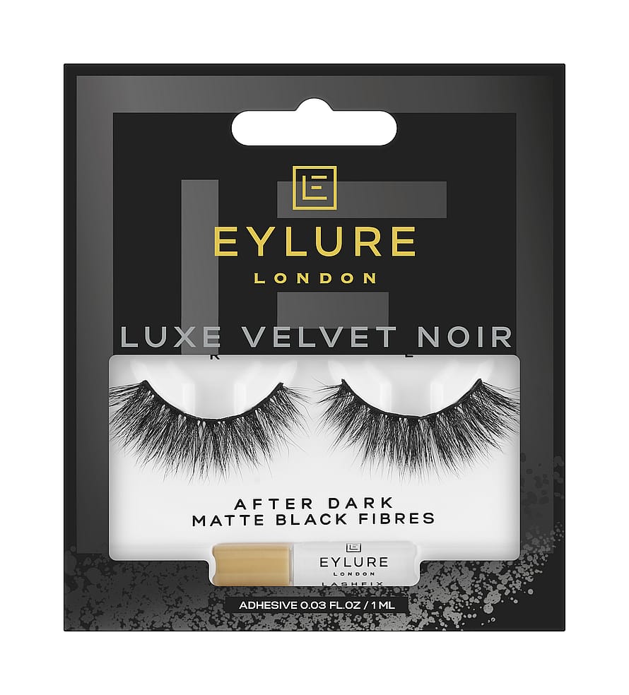 Eylure Luxe Velvet Noir -ripset on valmistettu mattamustista Luxury Faux Mink -kuiduista, jotta lopputulos on intensiivinen. Velvet Noir After Dark -ripset ovat kerrostetut, pehmeät ripset, jotka tuovat katseeseen syvyyttä ja intensiivisyyttä. Käsin valmistettuja ripsiä voi käyttää uudelleen jopa viisi kertaa. Pakkauksessa on mukana ilmainen lateksiton ripsiliima, joka kestää jopa 18 tuntia.