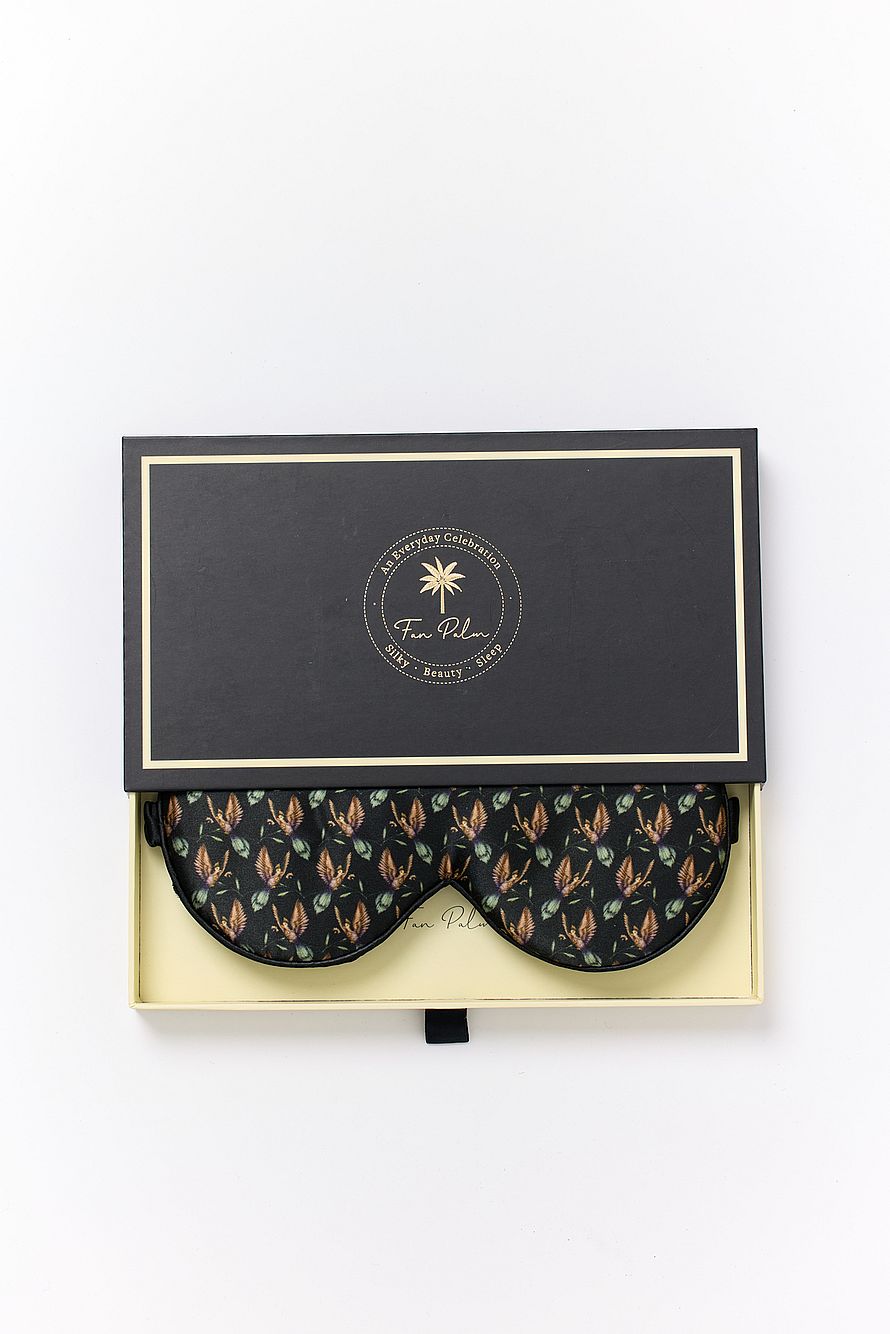 Fan Palm -silmänaamio asettuu pehmeästi kasvoillesi samalla estäen valon, ja silkillä päällystetty joustava hihna takaa maksimaalisen mukavuuden ilman, että se vahingoittaa hiuksiasi. Fan Palm -silkkimaski auttaa sinua saavuttamaan täydellisen rentouttavan unen. Se toimitetaan upeassa laatikossa, mikä tekee siitä ihanteellisen lahjan tai pienen hemmottelun itsellesi. 100 % Mulberry-silkkiä.