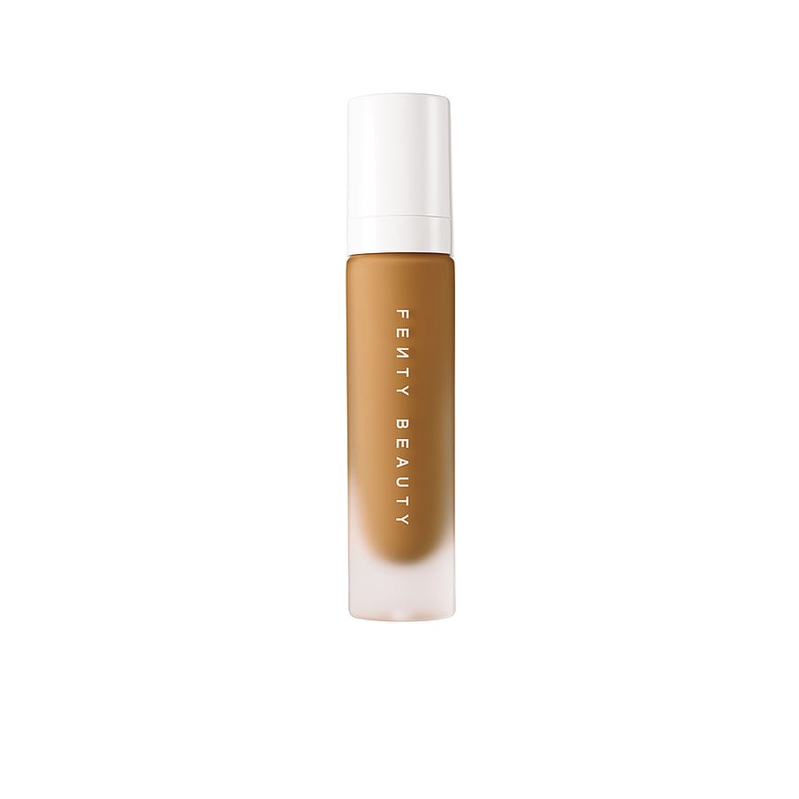 Parhaimman lopputuloksen saamiseksi valmistele iho Fenty Skin Hydra Vizor SPF 30 kosteusvoiteella ja Pro Filtr Instant Retouch Primerilla ennen meikivoiteen levitystä. Sekoita hyvin väripigmenttien aktivoimiseksi. Täyden peittävyyden meikkiin pumppaa 1-2 kertaa kämmenselälle. Taputtele tuotetta Full-Bodied 110 meikkivodesiveltimellä keskelle kasvoja ja häivytä ulospäin. Keskipeittävään meikkiin pumppaa 1 kerta kämmenselälle. Painele tuotetta kostealla Precision 100 meikkisienellä kohtiin joihin haluat peittävyyttä ja häivytä ulospäin. Rihannan vinkki: Äärimmäiseen huokosten peittämiseen painele tuotetta Full-Bodied 110 meikkivodesiveltimellä ihoon, häivytä painellen ja toista.