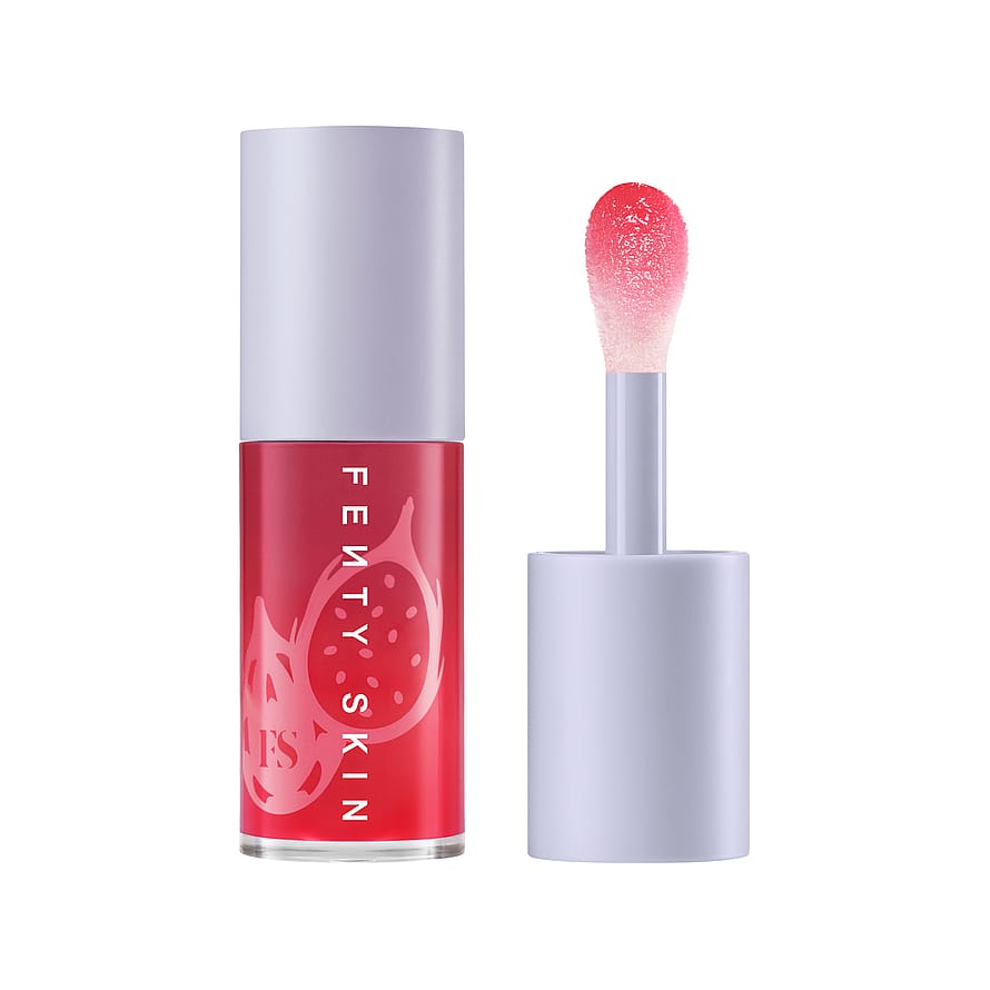 Fenty Skin Kalahari Melon Treat Hydrating + Strengtening Lip Oil on erittäin kosteuttava huuliöljy, joka lukitsee kosteuden ja pitää huulet pehmeinä. Kosteuta ja vahvista huuliasi kolmella eri kirsikkauutteella. Syväkosteuttaa huulet ja lukitsee kosteuden koko päiväksi. Hedelmäinen, melonin inspiroima tuoksu. Muhkea applikaattori vaivattomaan levitykseen.