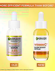 Kaipaako ihosi lisää säteilevyyttä? Garnier Skinactive Vitamin C* Glow Boost Serum 30ml on hehkuseerumi, joka on rikastettu tehokkaalla [3,5 %] C*-vitamiinin, niasiiniamidin ja salisyylihapon seoksella, joka saa ihon säteilemään ja häivyttää pigmenttiläiskiä. Super Citrus, joka sisältyy myös koostumukseen, on sitruunauute, jonka tiedetään kirkastavan ihon sävyä. Käytä kahdesti päivässä puhdistetuille kasvoille ja nauti tehostetusta hehkusta!