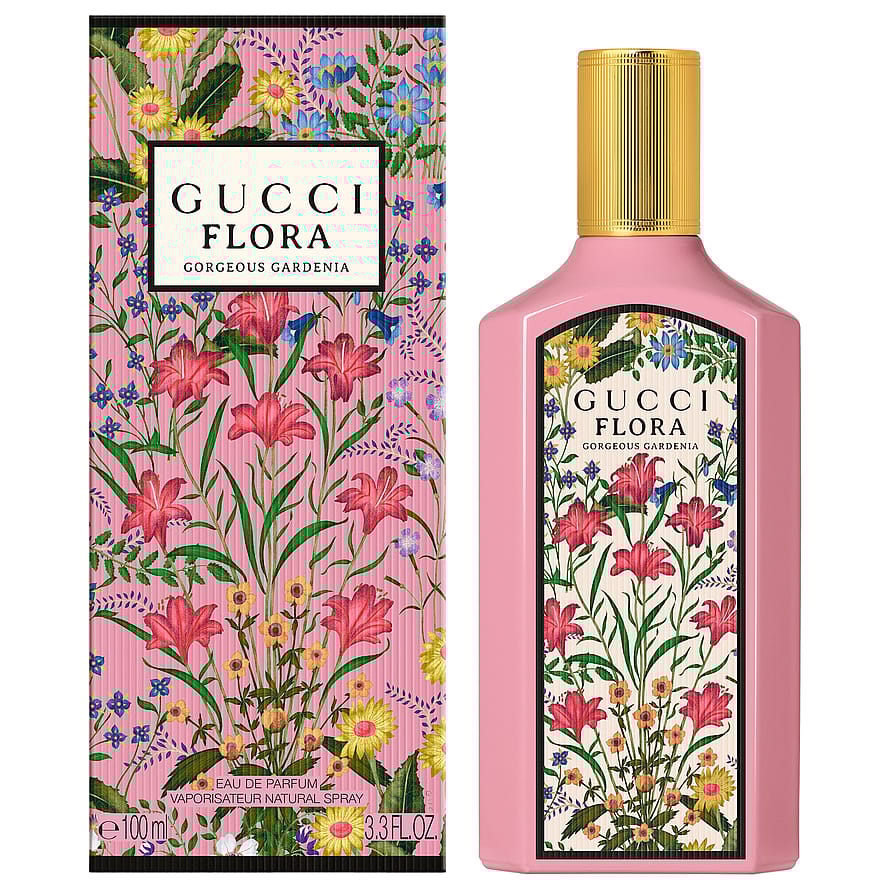 Gucci Flora Gorgeous Gardenia Eau de Parfum on kukkainen ja säteilevä tuoksu täynnä iloa ja mielikuvitusta. Kauneutensa ja myyttisen symboliikkansa vuoksi ihailtu gardenia on tuoksun ytimessä antaen sille modernin, lumoavan ja positiivista energiaa huokuvan luonteen. Tuoksu avautuu raikkaalla päärynänkukka-akordilla, joka tuo kirkkaan ja kuplivan sävyn. Sydämessä puhkeavat kukkaan valkoinen gardenia ja loistava aitojasmiiniabsoluutti, jotka luovat hienostuneen ja aistillisen kukkaistulkinnan. Pohjalla tuoksun viimeistelevät pehmeät fariinisokerin ja patsulin sävyt, jotka lisäävät hienovaraista makeutta ja syvyyttä sekä luovat naisellisen, ilmaisuvoimaisen ja vangitsevan, iholla viipyvän kokonaisuuden. Lakeerattu, vaaleanpunainen, kullansävyisellä korkilla viimeistelty lasipullo huokuu eleganssia ja modernia kauneutta.