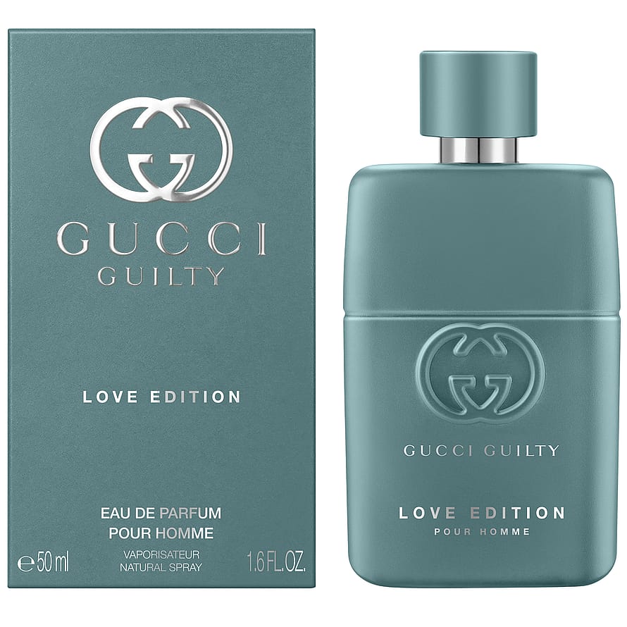 Gucci Guilty Love Edition Pour Homme & Pour Femme ovat kaksi voimakasta ja intohimoista tuoksua, jotka on luotu juhlistamaan rakkautta kaikissa sen muodoissa ystävänpäivän kunniaksi. Tuoksuduo hämärtää maskuliinisen ja feminiinisen rajoja lisäämällä miehisen signatuurinuotin naisten tuoksuun ja feminiinisen signatuurinuotin miesten tuoksuun. Gucci Guilty Love Edition Pour Homme avautuu virkistävillä, maskuliinisilla katajan nuoteilla, jotka antavat balsamimaisen ja mausteisen sävyn. Nahkaiset ja puuvivahteiset nuotit kietoutuvat sydäntuoksun säteilevään appelsiininkukka-absoluuttiin luoden tasapainoisen kokonaisuuden täynnä intohimoa ja aistillista voimaa. Kermaisen kukkainen vivahde, sekä raikas että täyteläinen, vangitsee ja luo vastustamatonta vetovoimaa. Tuoksun viimeistelee puuvivahteinen, aistillinen Ambrofix™-pohja, joka jättää jälkeensä viipyilevän meripihka-auran. Miesten tuoksun mattapintainen, turkoosi pullo symboloi rakkaustarinan toista puolikasta. Pullon design on viimeistelty muotitalon klassisella GG-logolla ja hopeanvärisellä harjatulla korkilla.