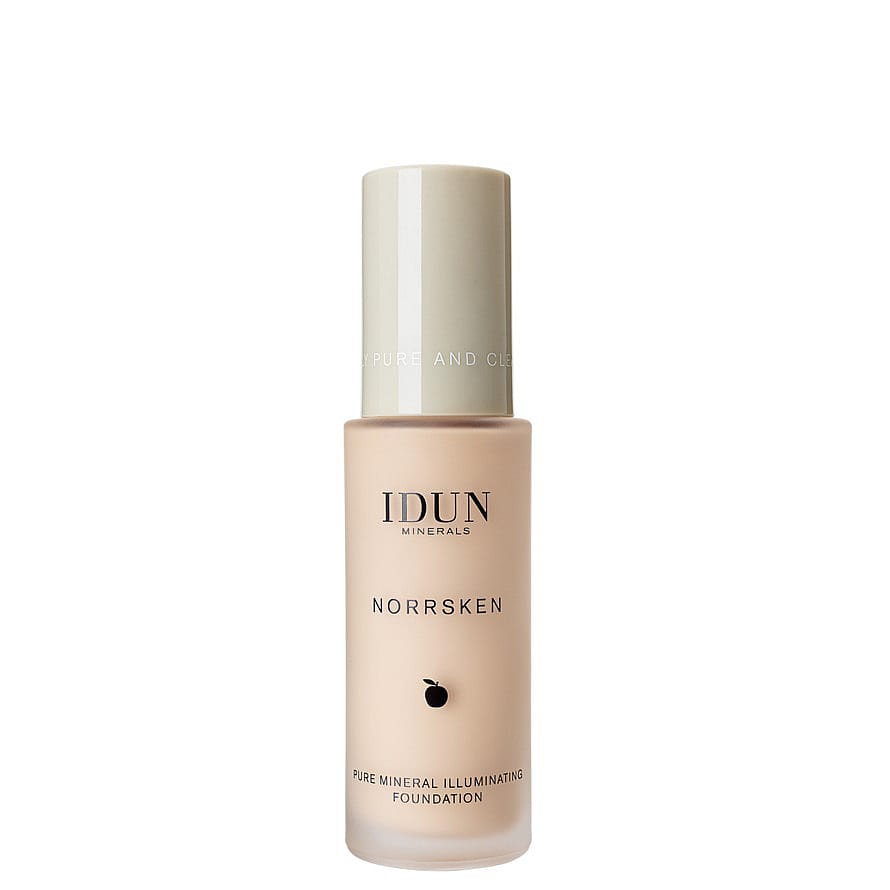 Heleyttävä nestemäinen mineraalimeikkivoide, joka sulautuu ihoon antaen tasaisen ja luonnollisen viimeistelyn sekä kevyen silauksen. IDUN Minerals Liquid Mineral Foundation Norrsken koostuu puhdistetuista mineraaleista, jotka antavat kevyen tai keskivahvan peittävyyden, joka on rikastettu antioksidanttisella E-vitamiinilla ja pohjoismaisella puolukansiemenöljyllä, jotka kosteuttavat, hoitavat ja suojaavat ihoa.