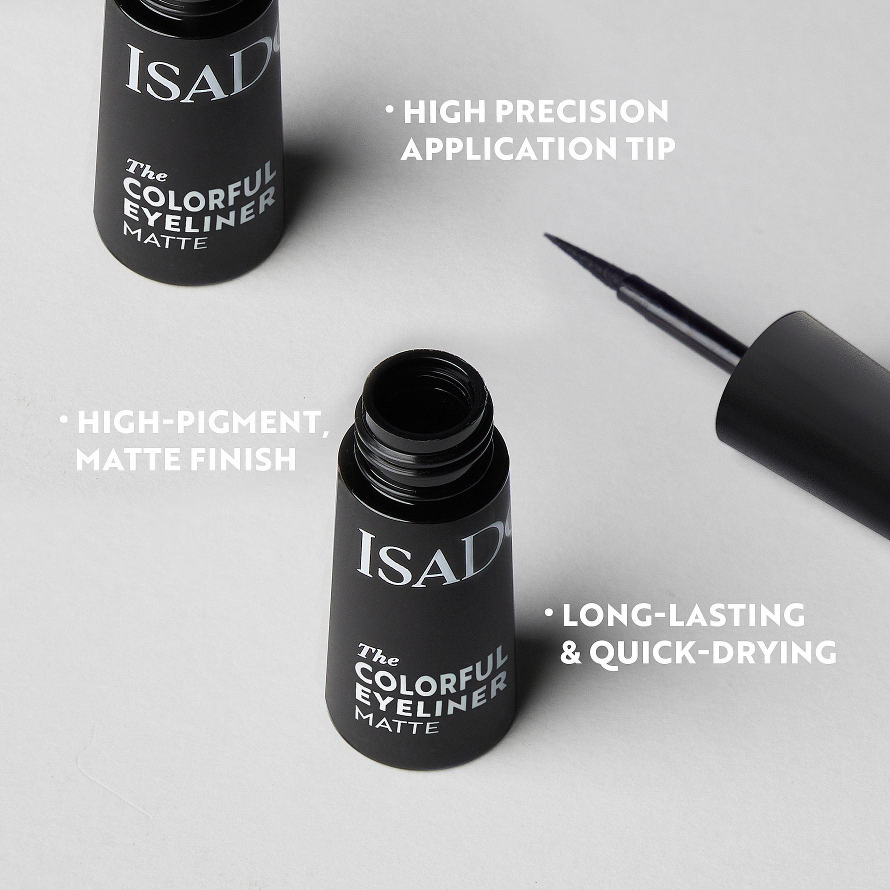 Nestemäinen silmänrajaus, jolla saat tarkan ja tasaisen jäljen. Joustavalla ja tarkalla applikaattorilla voi tehdä sekä ohuen että näyttävän, leveämmän rajauksen. Runsaspigmenttinen ja vedenkestävä koostumus takaa täydellisen pidon ja intensiivisen värikylläisyyden. Kuivuu nopeasti ja antaa superkiiltävän lopputuloksen. Soveltuu myös herkkäsilmäisille ja piilolinssien käyttäjille.