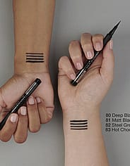 Intensiivisen mustan värin jättävä, taipuisalla huopakärjellä varustettu rajaustussi.. Flex Tip Eyeliner -rajausvärin pitkällä, joustavalla huopakärjellä teet silmiisi nopeasti ja vaivattomasti joko ohuen rajauksen tai näyttävän siipimäisen rajauksen. Rajausvärin vesipohjainen koostumus sisältää runsaasti pigmenttejä, on vettä hylkivä, pitkäkestoinen ja tahraamaton. Kaiken kaikkiaan Flex Tip Eyeliner on yksi helppokäyttöisimmistä rajausväreistä.. - Helppo ja nopea käyttää