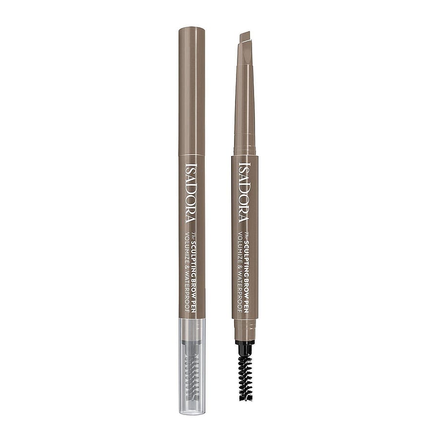 IsaDora Sculpting Brow Pen kulmakynän litteä ja viistosti muotoiltu kärki tekee kulmien muotoilusta erittäin helppoa. Pehmeä, hyvin levittyvä koostumus on vettähylkivä. Täytä, korosta ja muotoile kulmasi. Luonnollinen lopputulos. Kierrettävää automaattikynää ei tarvitse teroittaa. Kynän mukana on harja.