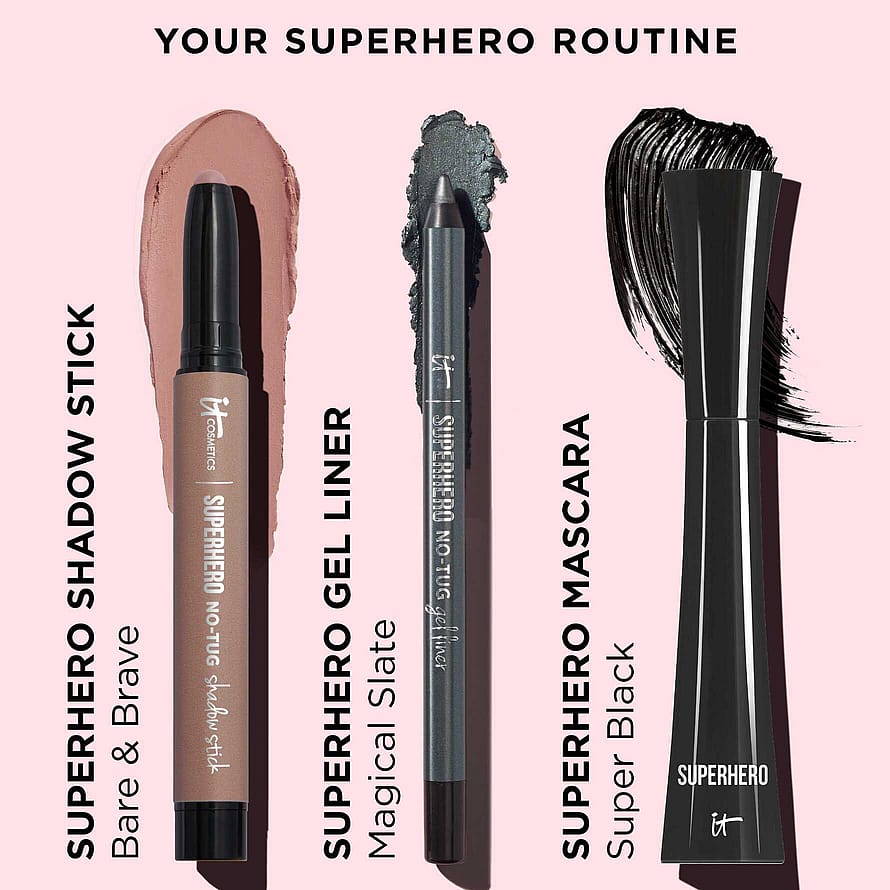 Superhero No-Tug Eyeshadow Sticks -luomiväripuikoissa on kaikki ne ominaisuudet, mitä rakastat kestävissä luomiväreissä. Nyt helppokäyttöisessä voidemaisessa luomiväripuikossa! Ainutlaatuinen No-Tug Technology™ -tekniikka ja helposti häivytettävä luomiväripuikko levittyvät helposti eikä rasita herkkää silmänympärysihoa. Saatavana matta- ja helmiäisvärinä. Jokainen 12 upeasta sävystä on erittäin hyvin kerrostettavissa, joten voit luoda rajattomasti lookkeja! Lisäksi sen koostumus on täysin erilainen, joten sinun ei tarvitse murehtia siitä, että se kertyy luomivakoon. Saat todellakin upeimmat silmät yhdellä vedolla! 5 superetua! Super Smooth Glide Super Blendable Super Creaseless Super Buildable Super All-Day Wear