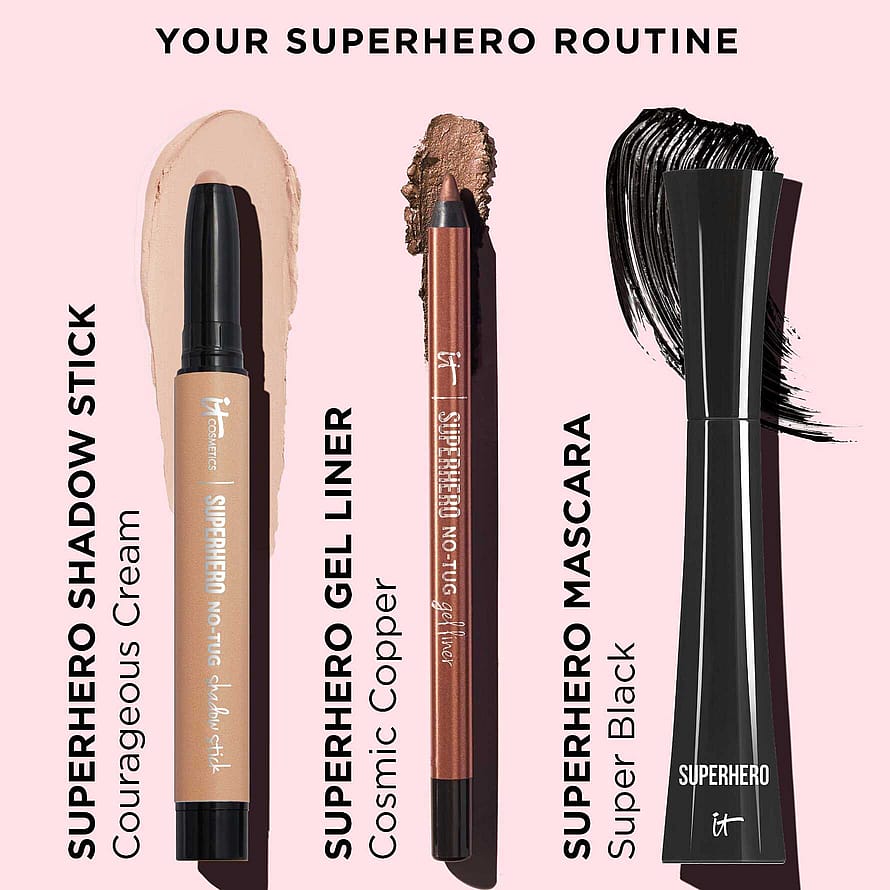 Superhero No-Tug Eyeshadow Sticks -luomiväripuikoissa on kaikki ne ominaisuudet, mitä rakastat kestävissä luomiväreissä. Nyt helppokäyttöisessä voidemaisessa luomiväripuikossa! Ainutlaatuinen No-Tug Technology™ -tekniikka ja helposti häivytettävä luomiväripuikko levittyvät helposti eikä rasita herkkää silmänympärysihoa. Saatavana matta- ja helmiäisvärinä. Jokainen 12 upeasta sävystä on erittäin hyvin kerrostettavissa, joten voit luoda rajattomasti lookkeja! Lisäksi sen koostumus on täysin erilainen, joten sinun ei tarvitse murehtia siitä, että se kertyy luomivakoon. Saat todellakin upeimmat silmät yhdellä vedolla! 5 superetua! Super Smooth Glide Super Blendable Super Creaseless Super Buildable Super All-Day Wear