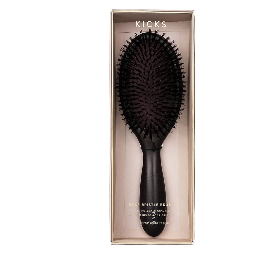 KICKSin yksinoikeudella myymä korkealaatuinen hiusharja on 100 % sianharjasta, ja se hoitaa hiuksia ja tekee niistä kauniit, pehmeät ja kiiltävät. Päänahan öljyt levittyvät hiuksiin, jolloin rasvaisuuden tunne vähenee ja hiukset saavat suojaa, ovat vähemmän pörröiset ja kiiltävät luonnollisesti. Harjassa on luonnonkuminen pohja, joka ehkäisee staattista sähköä. Harjan varsi on valmistettu FSC-sertifioidusta puusta.