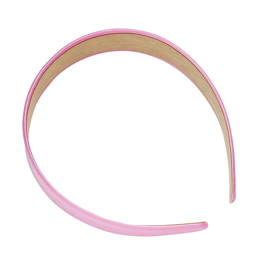 Hiuspanta, joka on päällystetty kiiltävällä vaaleanpunaisella kankaalla ja joka sopii yhtä hyvin kampaukseen kuin auki oleviin hiuksiin.
