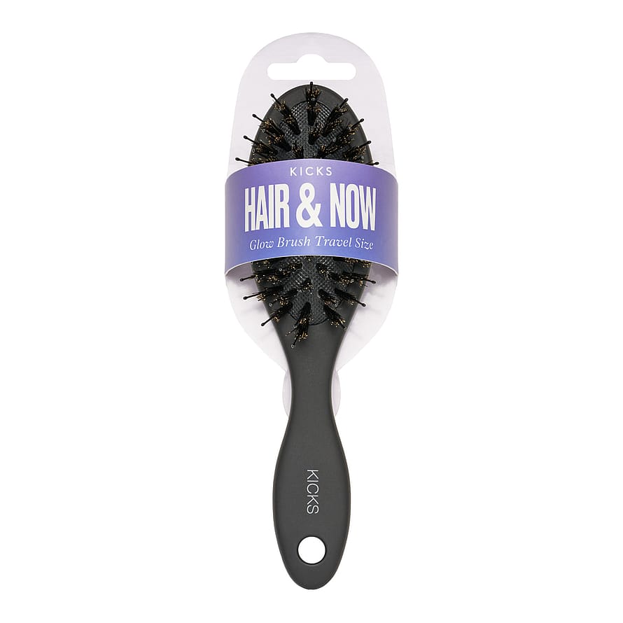 KICKS Glow Brush tekee hiuksista pehmeät ja kiiltävät. Tämä harja on valmistettu nailonin ja sianharjasten yhdistelmästä ja tekee hiuksista pehmeät ja kiiltävät. Sianharjaksista valmistettu harjaosa kuluttaa hiuksiasi vähemmän kuin synteettiset harjat sekä hieroo ja stimuloi hiuspohjaa. Samalla, kun harja selvittää hiukset hellävaraisesti ja helposti, se kuljettaa päänahan luonnollisia öljyjä alas hiusten pituuksiin ja latvoihin. Näin harja siis hoitaa hiuksiasi ja vähentää niiden pörröisyyttä ja staattisuutta.
