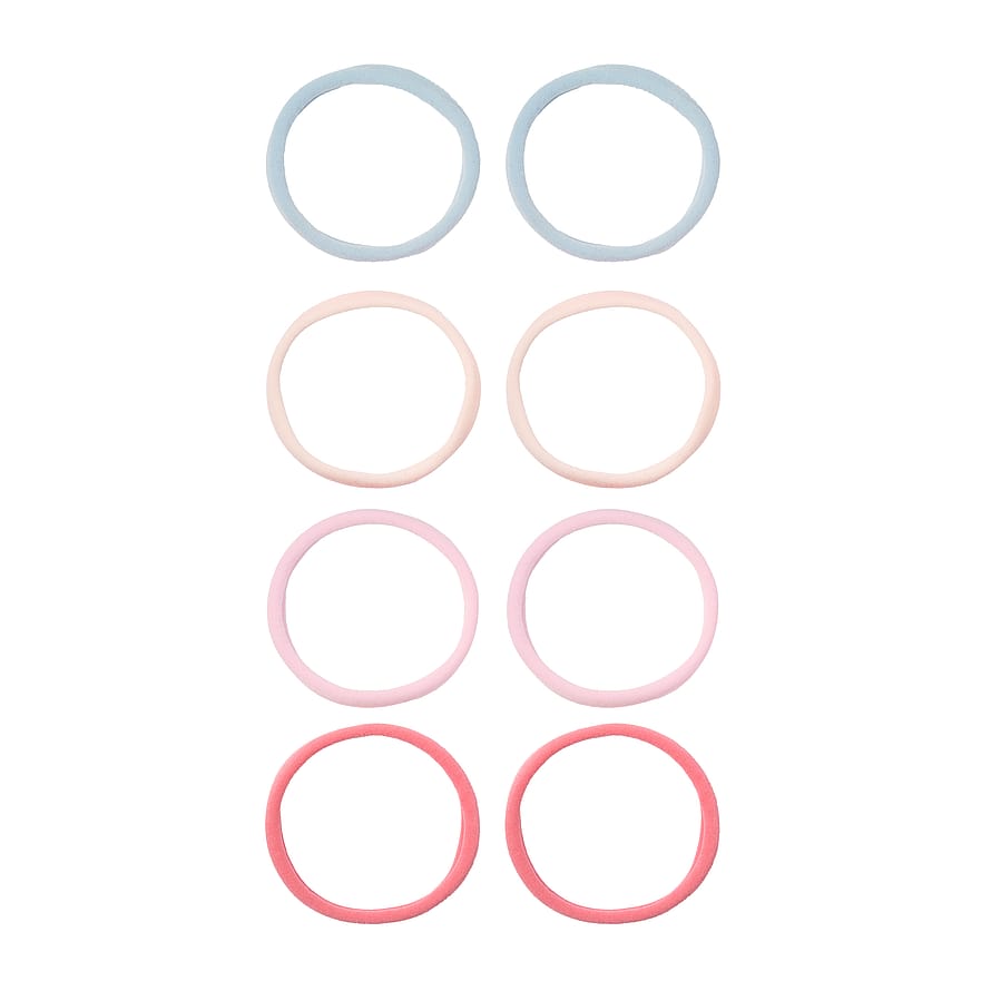 Vahvat, pehmeät ja hiuksille hellävaraiset hiuslenkit. Kahdeksan kappaleen pakkaus.