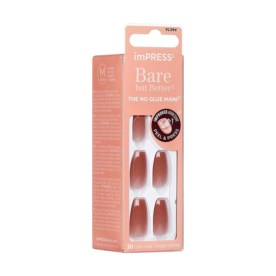 Nude, mutta parempi NO GLUE Color manikyyri? Kyllä kiitos! Löydä täydellinen nude-väri IMPRESS Color Bare but Better -kokoelmalla ja luo trendikkäin look. Uuden parannetun liiman ansiosta kynnet ovat erittäin kestäviä ja kestävät jopa 7 päivää.