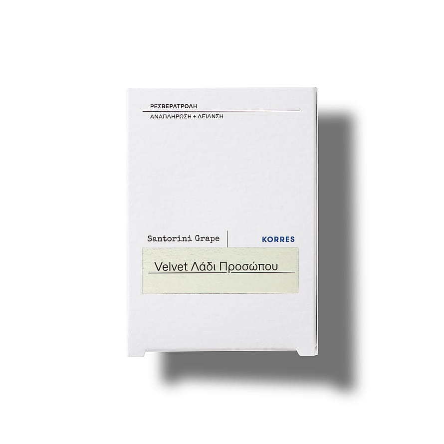 "Ihosta samettisen pehmeä yhdellä pisaralla kosteutusta, antioksidanttipitoisilla Santorinin rypäleillä, samalla kun tasoitat epätasaisuuksia ja luot heleyttä ilman kiiltoa.