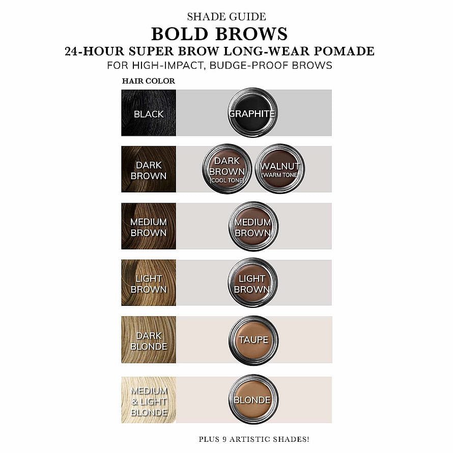 Saatavana 16 väriä neutraaleista ruskeista sävyistä eloisiin ja voimakkaisiin väreihin sekä ”White out” -sekoitus sinulle, joka haluat valkaistun näköiset kulmakarvat. 100% vegaaninen.