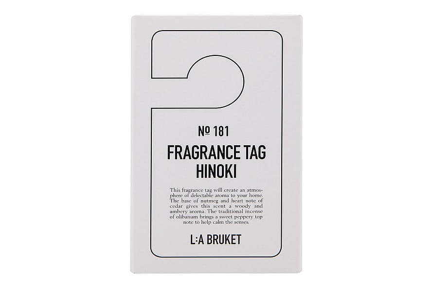 L:a Bruket 181 Fragrance Tag Hinoki on luomupaperista ja kasvipohjaisista tuoksun kantajista valmistettu tuoksulappu, joka luo kotiisi ainutlaatuisen tuoksukokemuksen.
