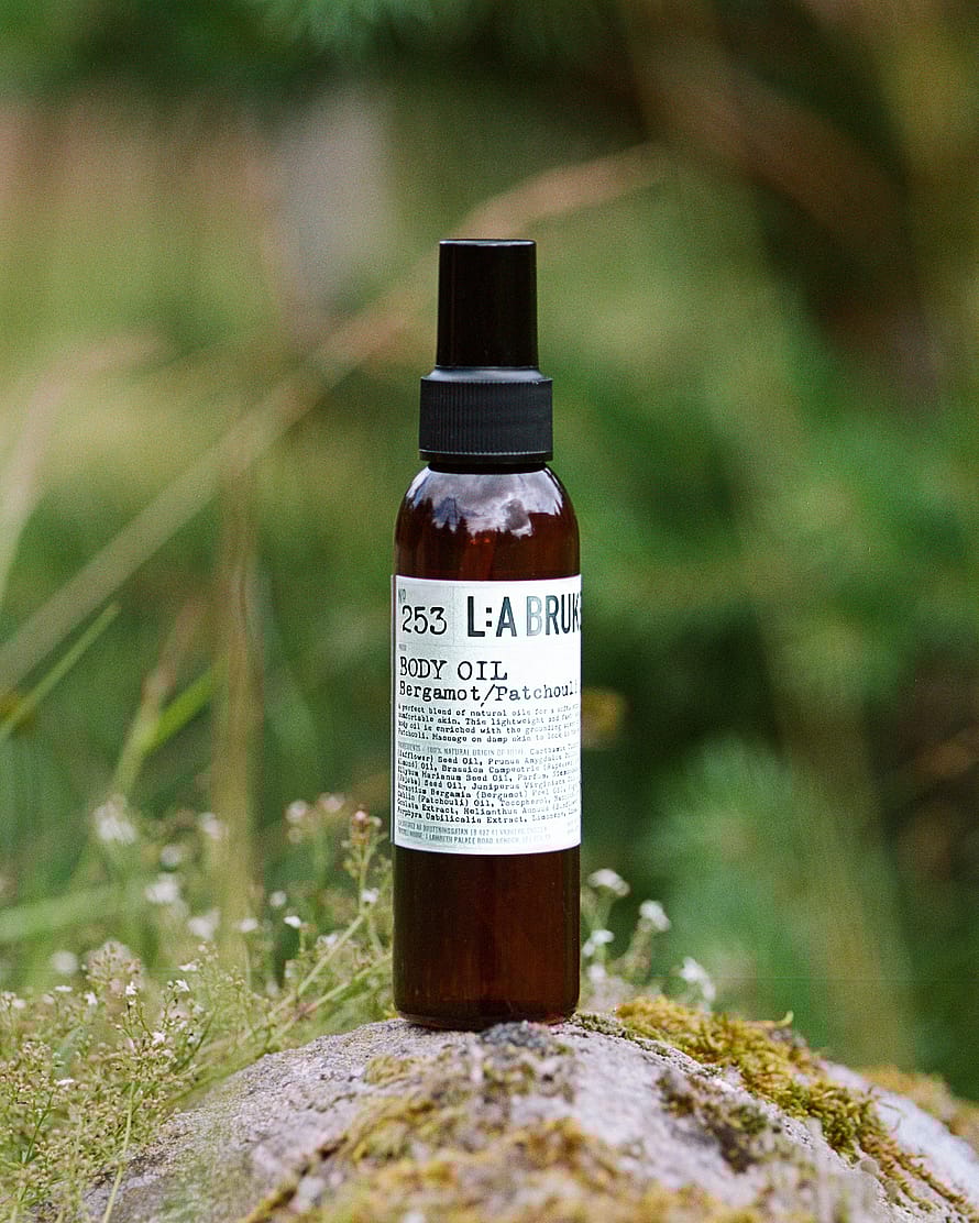 L:a Bruket 253 Body Oil Bergamot/Patchouli on nopeasti imeytyvä vartaloöljy, joka kosteuttaa syvää ja lisää ihon joustavuutta. vartaloöljy sisältää mikro- ja makroleväkoostumuksen, jossa on runsaasti rasvahappoja ja omega 3 -rasvahappoja, jotka lievittävät ja palauttavat ihon kosteussuojaa. Ne on yhdistetty ravitseviin öljyihin, kuten saflori-, rypsi- ja jojobaöljyyn, joka pehmentää, ravitsee ja suojaa ihoa vapailta radikaaleilta jättäen Body Oil -vartaloöljyn silkkisen sileäksi.