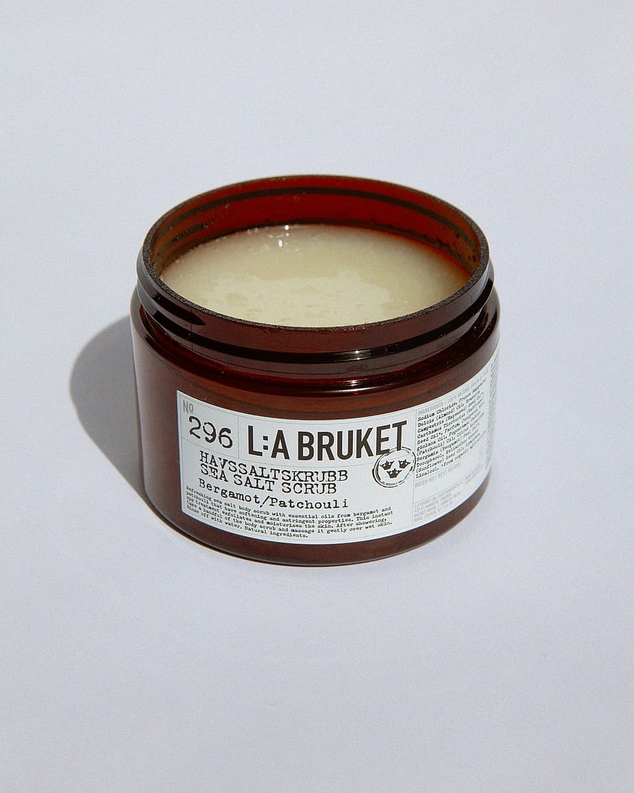 L:a Bruket 296 Sea Salt Scrub Bergamot/Patchouli on luonnollinen vartalokuorinta, joka sisältää runsaasti magnesiumia sisältävää suolaa ja manteliöljyä, joka kuorii ja kosteuttaa ihoa hellävaraisesti. Kuorinta vapauttaa ihon myrkkyistä, elvyttää kehoa ja sielua sekä auttaa stimuloimaan verenkiertoa, mikä edistää tervettä ihoa ja sileämmän koostumuksen. Sisältää runsaasti D-, E-vitamiinia, kivennäisaineita ja tärkeitä rasvahappoja, jotka vahvistavat ihoa, ehkäisevät tulehduksia, korjaavat vaurioita ja ehkäisevät tehokkaasti kuivumista.
