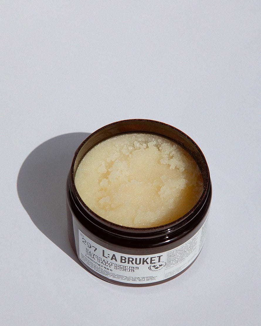 L:a Bruket 297 Sea Salt Scrub Lemongrass on luonnollinen vartalokuorinta, joka sisältää runsaasti magnesiumia sisältävää suolaa ja manteliöljyä, joka kuorii ja kosteuttaa ihoa hellävaraisesti. Kuorinta vapauttaa ihon myrkkyistä, elvyttää kehoa ja sielua sekä auttaa stimuloimaan verenkiertoa, mikä edistää tervettä ihoa ja sileämmän koostumuksen. Sisältää runsaasti D-, E-vitamiinia, kivennäisaineita ja tärkeitä rasvahappoja, jotka vahvistavat ihoa, ehkäisevät tulehduksia, korjaavat vaurioita ja ehkäisevät tehokkaasti kuivumista.
